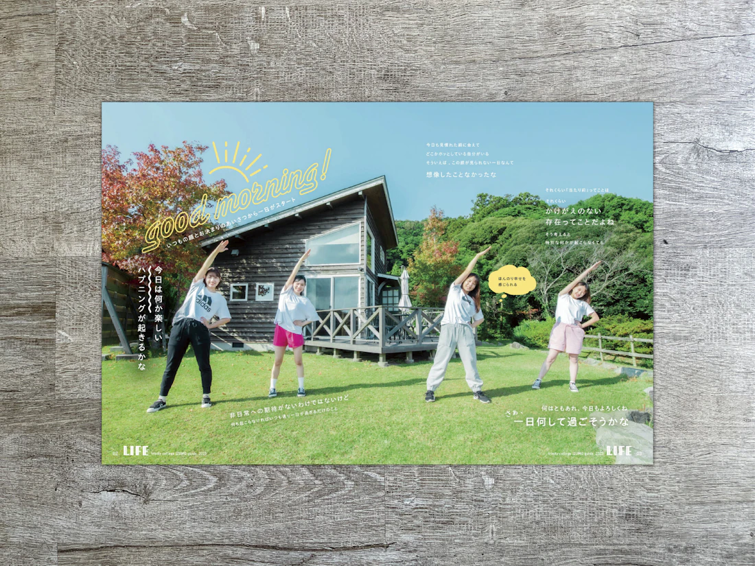 今回のパンフレットは、「なんでもない日」と「毎日が特別」という対照的な視点を通じて、福祉と保育の現場で生きる人の温かさを描いた一冊です。学生たちが過ごす何気ない日常の中にこそ、福祉の原点があることを伝える、日常を愛おしむ学校案内となりました。