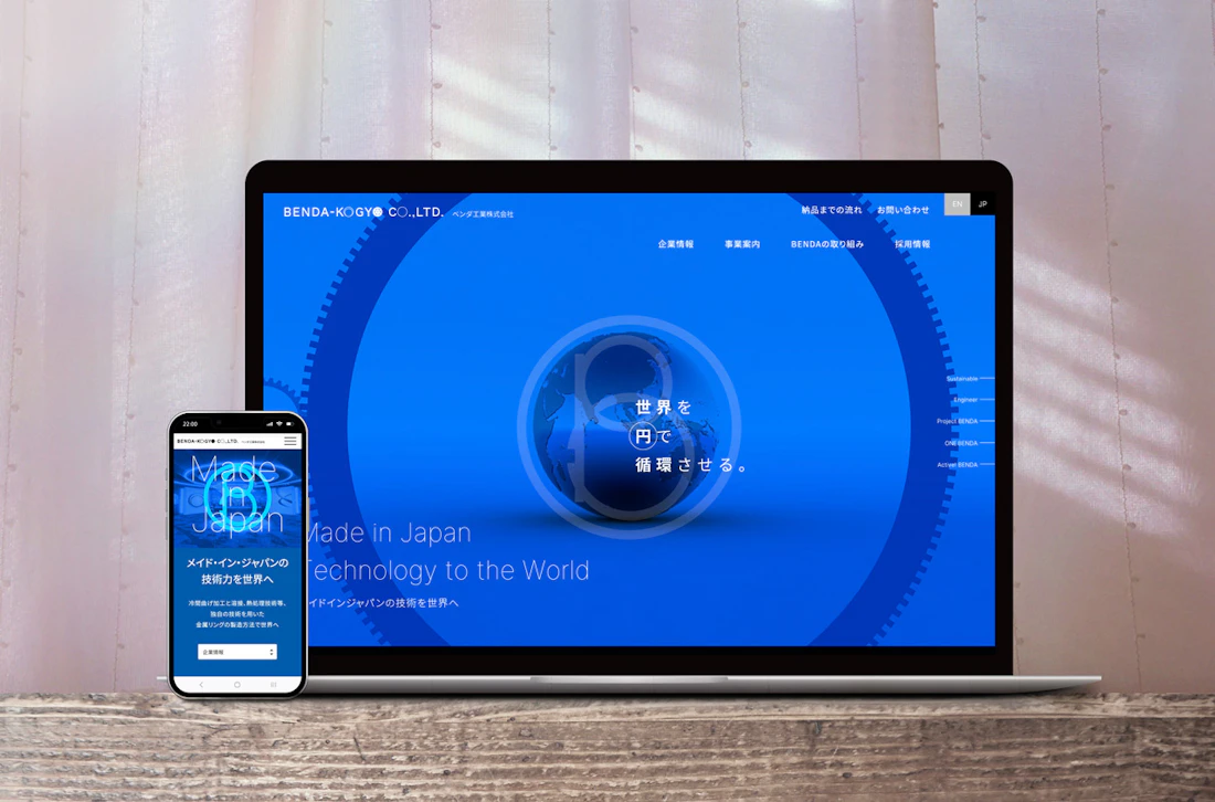 広島県呉市に本社を置くベンダ工業株式会社は、世界トップシェアを誇るリングギアメーカーです。創業以来掲げる「品質は命なり」という理念のもと、独自の「ベンダ工法」によって高品質・高歩留まり・低コストを実現し、グローバル市場において確かな信頼を築いてきました。今回のコーポレートサイトリニューアルでは、企業の歴史や技術力を整理・体系化しながら、サステナブルな社会の実現に貢献するものづくり企業としての姿をより明確に伝える構成としました。