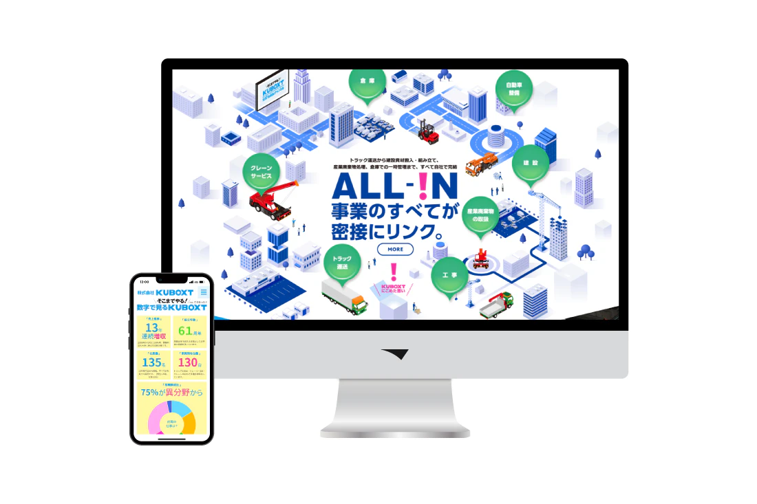 広島県を拠点に、運送・物流・倉庫業務など多角的に事業を展開する株式会社KUBOXT(クボックス)のウェブサイトをリニューアル制作しました。社員一人ひとりの情熱と、地域に密着した丁寧な仕事を大切にする企業姿勢を、ウェブデザインを通して表現しています。