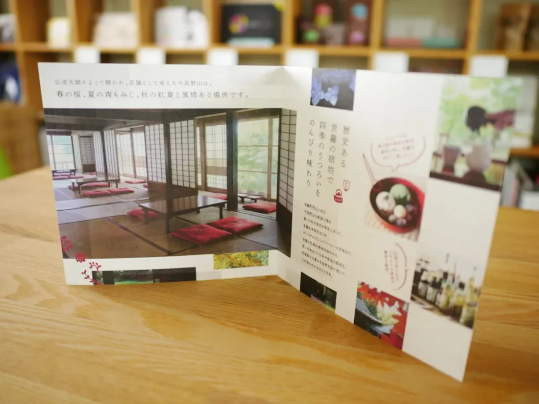 ウェブサイトでは、「古と今がとけ合う場所」をテーマに、建物の持つ静かな空気と、店主・吉宗氏の撮影による写真の美しさを最大限に生かす構成としました。トップページでは暖簾のゆらめき(PC版)や文字のフェードなどのアニメーションで柔らかな時間の流れを演出。今高野山の四季をスライドで紹介することで、季節ごとに訪れたくなるような臨場感を添えています。色調はキーカラーの赤を除き、ナチュラルトーンで統一。写真の魅力が引き立つ余白と静けさを大切にしました。