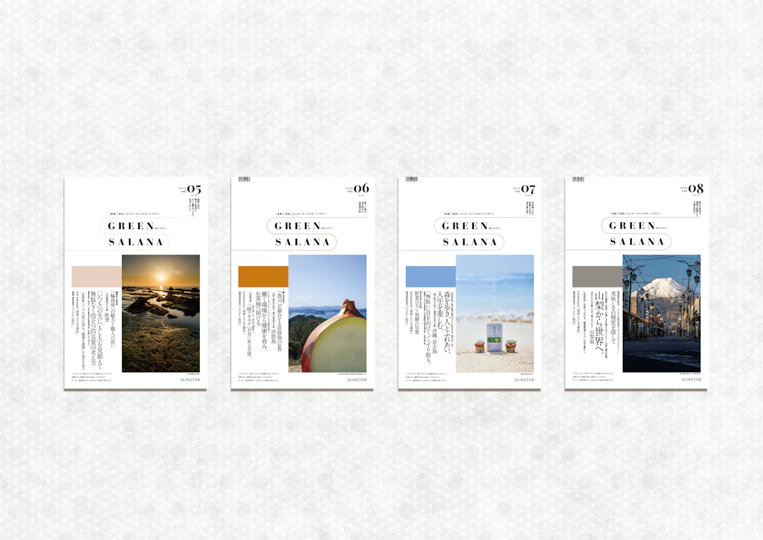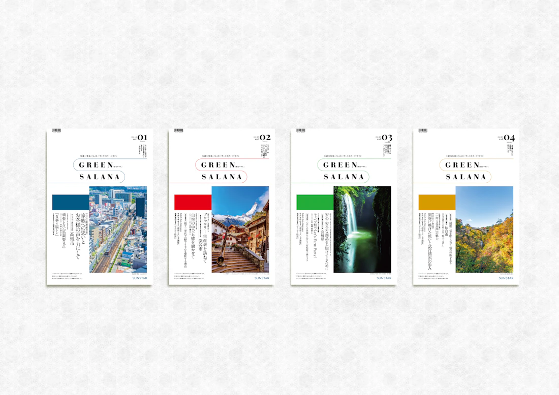 オーラルケアブランド「G・U・M(ガム)」で知られるサンスター株式会社は、「美と健康を、すべての人に。」を掲げ、健康食品・スキンケア・オーラルケアの通信販売事業を展開しています。その中でも、特定保健用食品「緑でサラナ」は、野菜の力(※1)でコレステロールを下げることが認められた、日本で唯一(※2)の飲料として多くの支持を得ています。私たちは、その定期購入者の皆さまにお届けする会報誌『GREEN SALANA』の企画・取材・撮影・編集・デザインを担当しています。