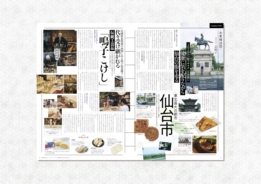 誌面構成では、商品情報だけにとどまらず、全国各地の人や文化を取材し、「健康を支える背景」を広く紹介する特集も展開。食をめぐる生産者の声や、地域の取り組みを通して、健康を「生活そのもの」として捉える姿勢を伝えています。また、誌面のトーンは「医療的」ではなく「生活感のある自然体」を意識。読者が手に取ったとき、商品への信頼とともに、あたたかく前向きな気持ちを抱けるようデザイン・文章表現を整えています。