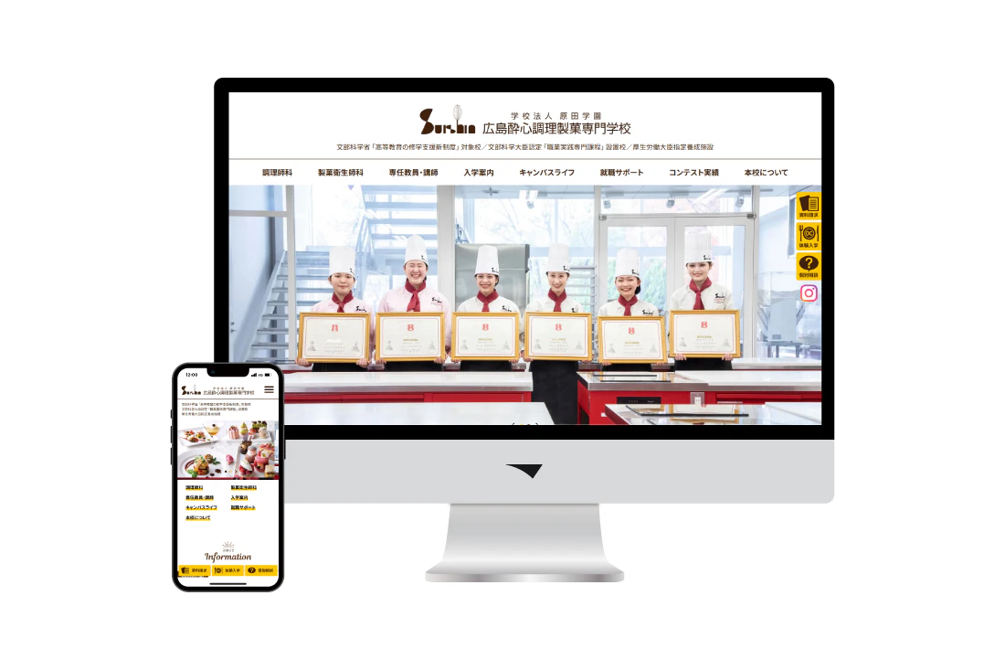 デザイン面では、学校のブランドカラーとパンフレットのトーンを踏襲しつつ、余白を生かした構成で清潔感と信頼感を演出。写真やタイポグラフィにはあたたかみを感じさせる工夫を加え、食を学ぶ楽しさや専門性が直感的に伝わるよう意識しました。