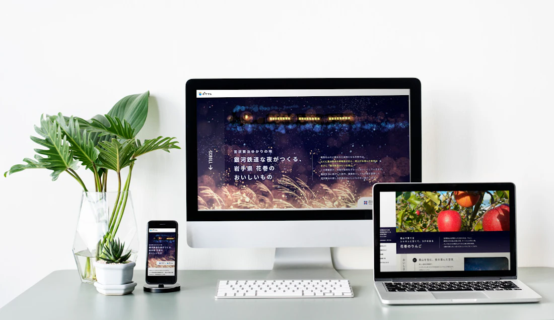 岩手県花巻市は、東西を山々に囲まれた自然豊かな盆地で、夏には昼夜の寒暖差が大きく、美しい星空が広がる地域です。その星空は、まるで宮沢賢治の描いた「銀河鉄道の夜」の世界のよう。そんな花巻の大地と気候が育む、豊かでおいしい特産品を紹介するランディングページを制作しました。