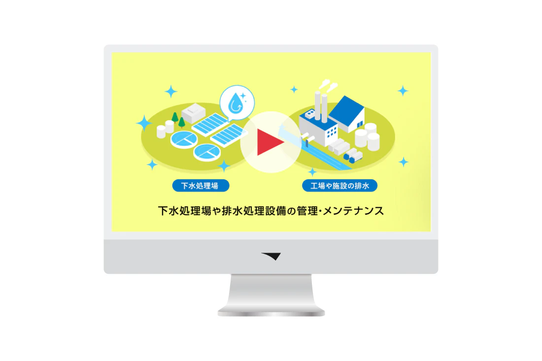 動画では、10種ある事業の中から「水処理施設の管理」「管路メンテナンス」「廃棄物収集運搬」「環境分析」の4事業をピックアップ。モーショングラフィックスを用いた軽快なアニメーションで、水処理や下水道の仕組みなど、専門的な内容を「誰にでもわかりやすく」解説しています。