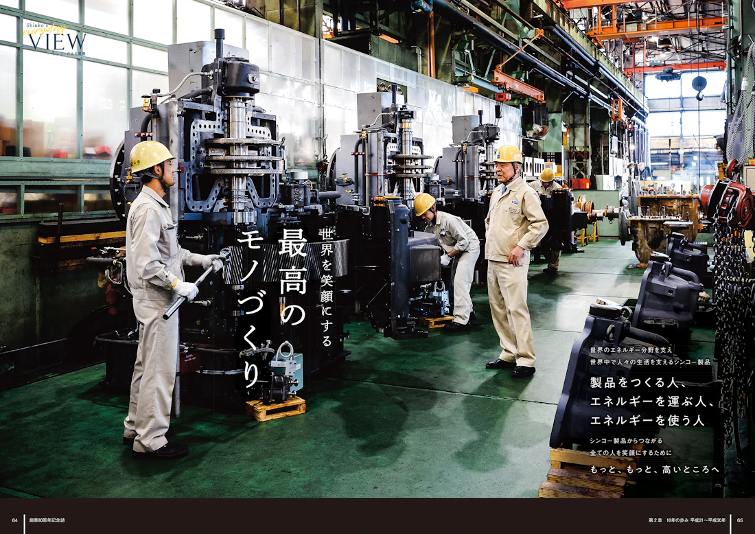 長年受け継がれてきた技術と信頼を礎に、未来へ向けて歩みを進めるシンコー。その姿勢を、親しみやすく、誇りをもって後世に残す記念誌となりました。