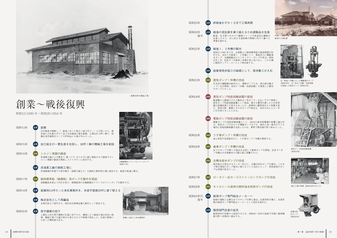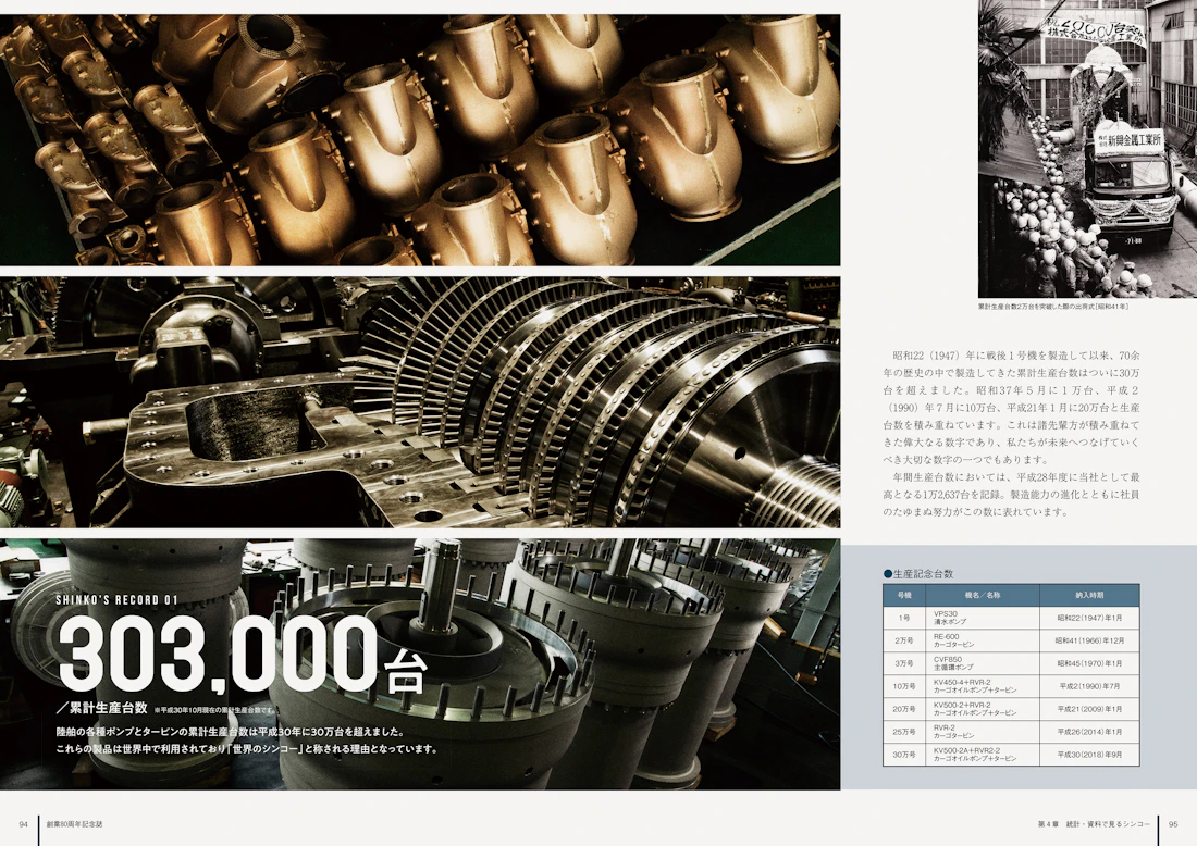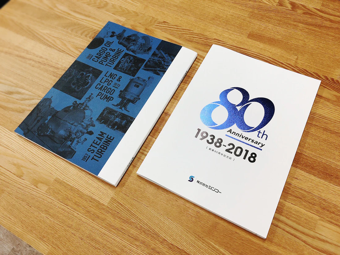 株式会社シンコーは、広島に本社を置き、船舶の機関室ポンプやオイルポンプ、LNG ポンプ、発電⽤タービンの製造を中心に、長年にわたって日本のエネルギー輸送、発電分野を支えてきた企業です。創業80周年を迎えるにあたり、従来の社史とは異なる「読まれる記念誌」を目指して、80周年記念誌の制作を行いました。
