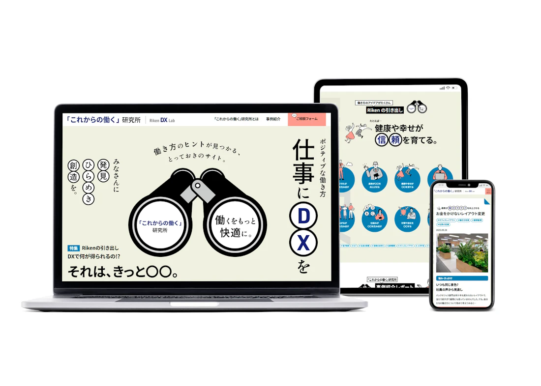 理研産業株式会社の新たな挑戦として、DX(デジタルトランスフォーメーション)事業を発信する専用サイト「これからの働く研究所(Riken DX Lab)」を制作しました。