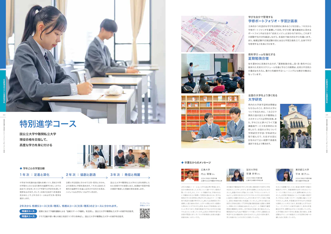 企画段階から意識したのは、「生徒が元気に、生き生きと学ぶ姿を、ありのままに伝えること」。そのために、取材・撮影では教室やグラウンド、廊下や部活動など、学校のあらゆる場所を訪れ、瞬間ごとの表情を丁寧に切り取りました。笑顔、真剣な眼差し、友達と語り合う姿——そのすべてが「ひろしま協創らしさ」であり、ページをめくるたびに学校の日常が立ち上がるような構成を目指しています。