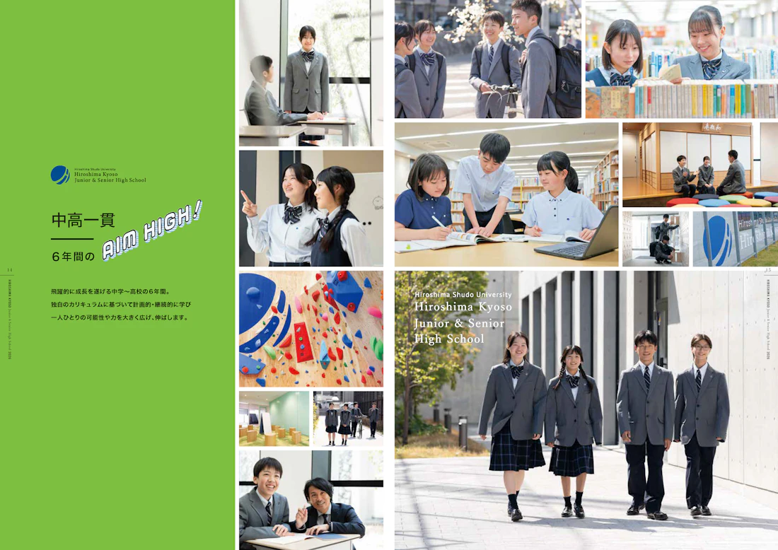 広島修道大学ひろしま協創中学校・高等学校は、広島修道大学の附属校として、中高一貫の学びを通じて「知・徳・体」の調和ある成長をめざす学校です。探究的な学習や大学との連携授業、豊かな国際教育など、多彩なプログラムを展開しながら、生徒一人ひとりの主体性を育む教育を実践しています。今回、同校の学校案内パンフレットの制作を担当しました。