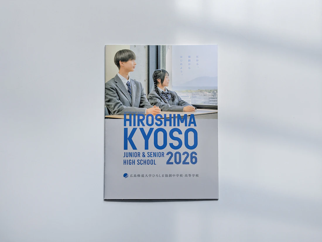 生徒の姿そのものが、学校の理念や教育の質を語ってくれる。そんな信念のもとでつくり上げた本パンフレットは、ひろしま協創中高が大切にしている「学びの楽しさ」を、手に取った瞬間に感じられる一冊となりました。