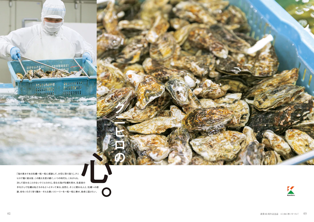 広島県尾道市に本社を置くクニヒロ株式会社は、かき加工食品を中心に、水産食品の製造・販売を行う企業として、長年にわたり「海の恵み」を食卓へ届けてきました。創業65周年を迎えるにあたり、その歩みを記録し、次代へと受け継ぐための記念誌を制作しました。