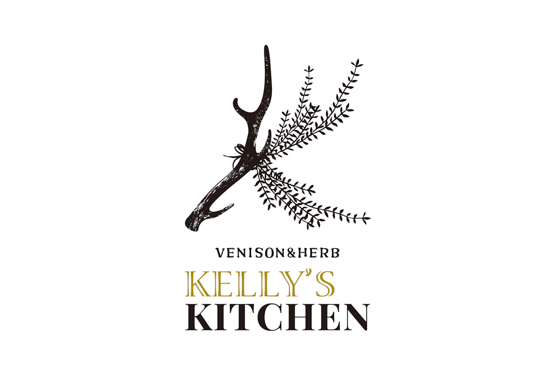 ロゴデザインは、その理念を端的に象徴する「鹿の角とハーブ」で構成。自然のめぐみが絡み合うように「K」をかたどり、筆の揺らぎを残した手描きの線で、手づくりのぬくもりと素朴な生命感を表現しています。派手さを抑えた静かな佇まいの中に、自然と共に生きるブランドの姿勢を込めました。