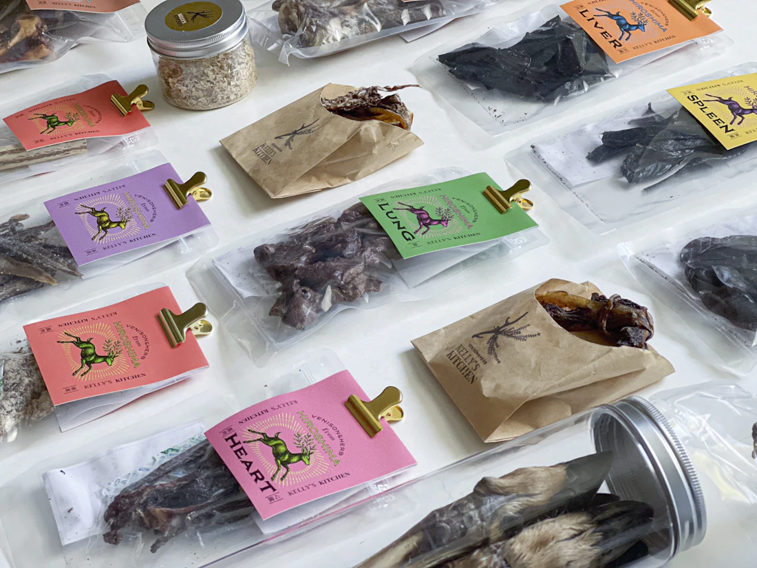 オーロインターナショナルが手がける、鹿肉とハーブを主原料としたペットフードブランド「KELLY’S KITCHEN」。自然の恵みを通して、食べることの意味と生命の力をもう一度見つめ直す——。そのブランドコンセプトを、視覚的に体現するパッケージデザインを担当しました。