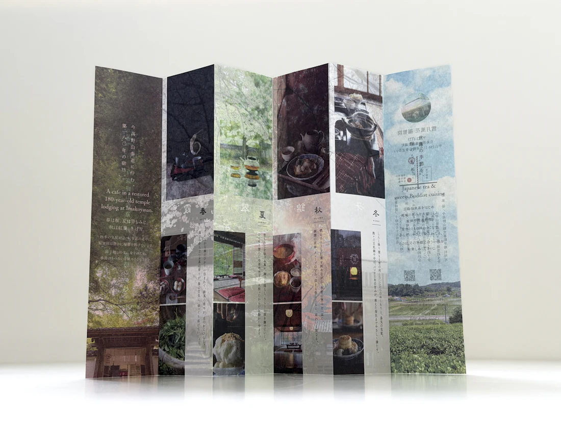 今高野山の参道に佇む宿坊「雪月風花 福智院」のリーフレット制作を担当しました。本案件では、施設を単なる案内対象としてではなく、「時間を過ごす場所」として伝えることを目的に、構造設計からビジュアル表現まで一貫して設計しています。